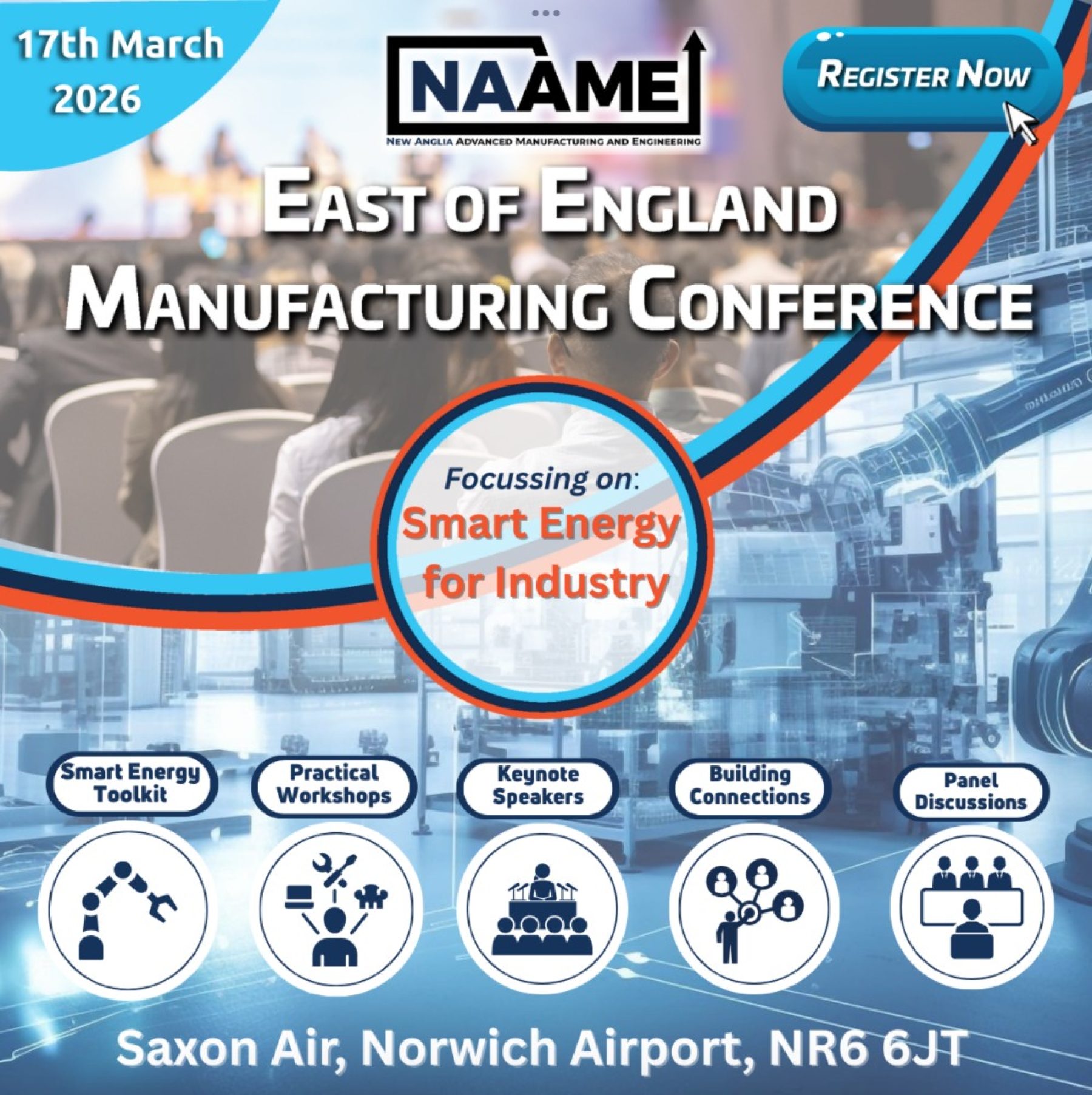 Join NAAME’s Annual Conference as we explore Smart Energy for Industry and how manufacturing and engineering organisations can take control of energy costs while strengthening resilience and sustainability. This is your opportunity to gain a clear understanding of the fundamentals—where to start, what technologies matter, and how to build an energy strategy that supports growth.